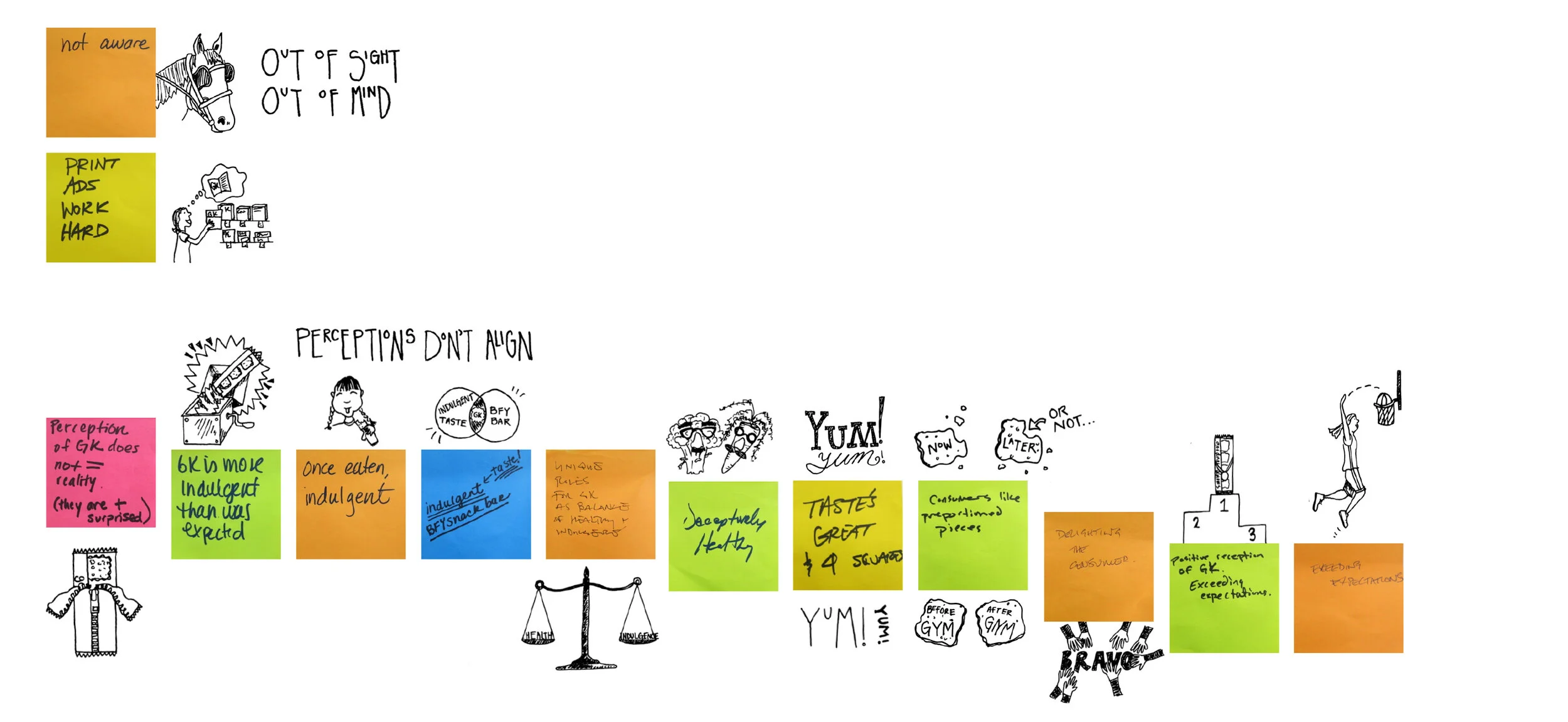 Insights discovered were then presented to the client and an illustrated PowerPoint report was produced to bring to life the team’s AHA moments (AKA Sticky Notes) learned during the workshop.